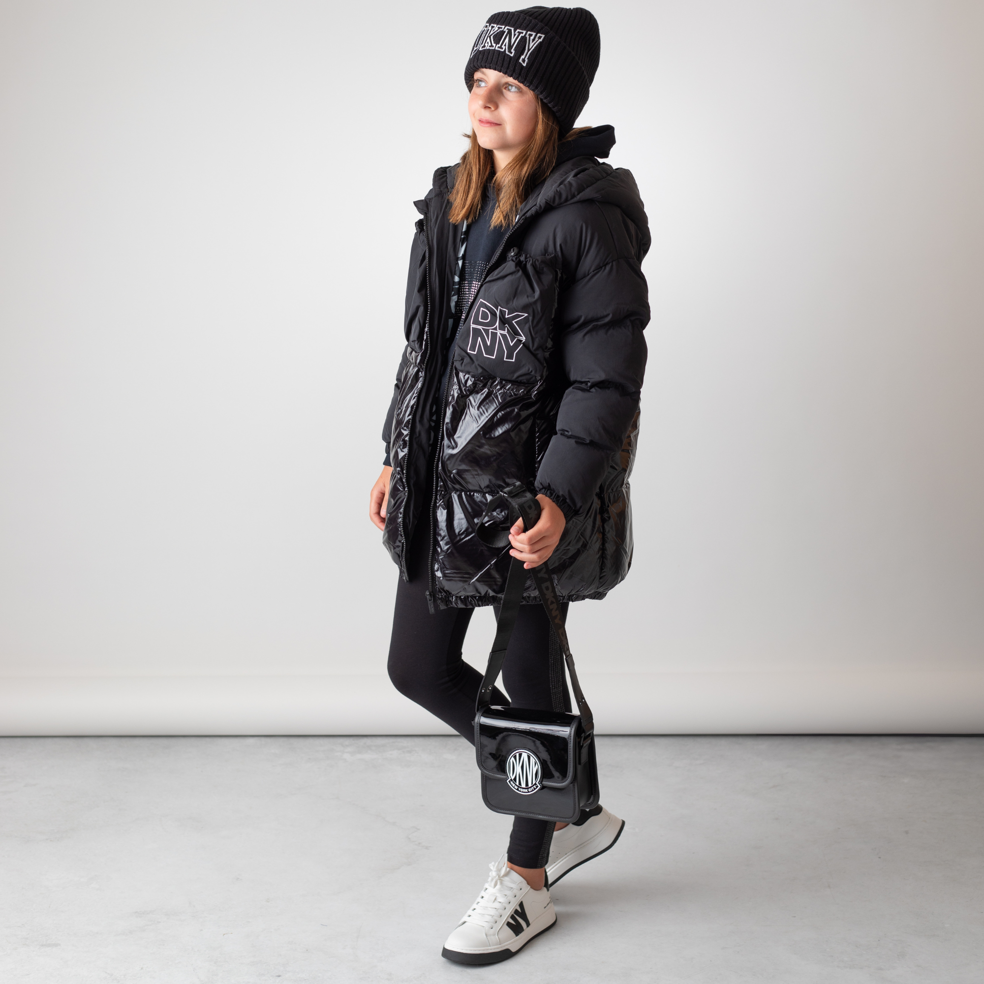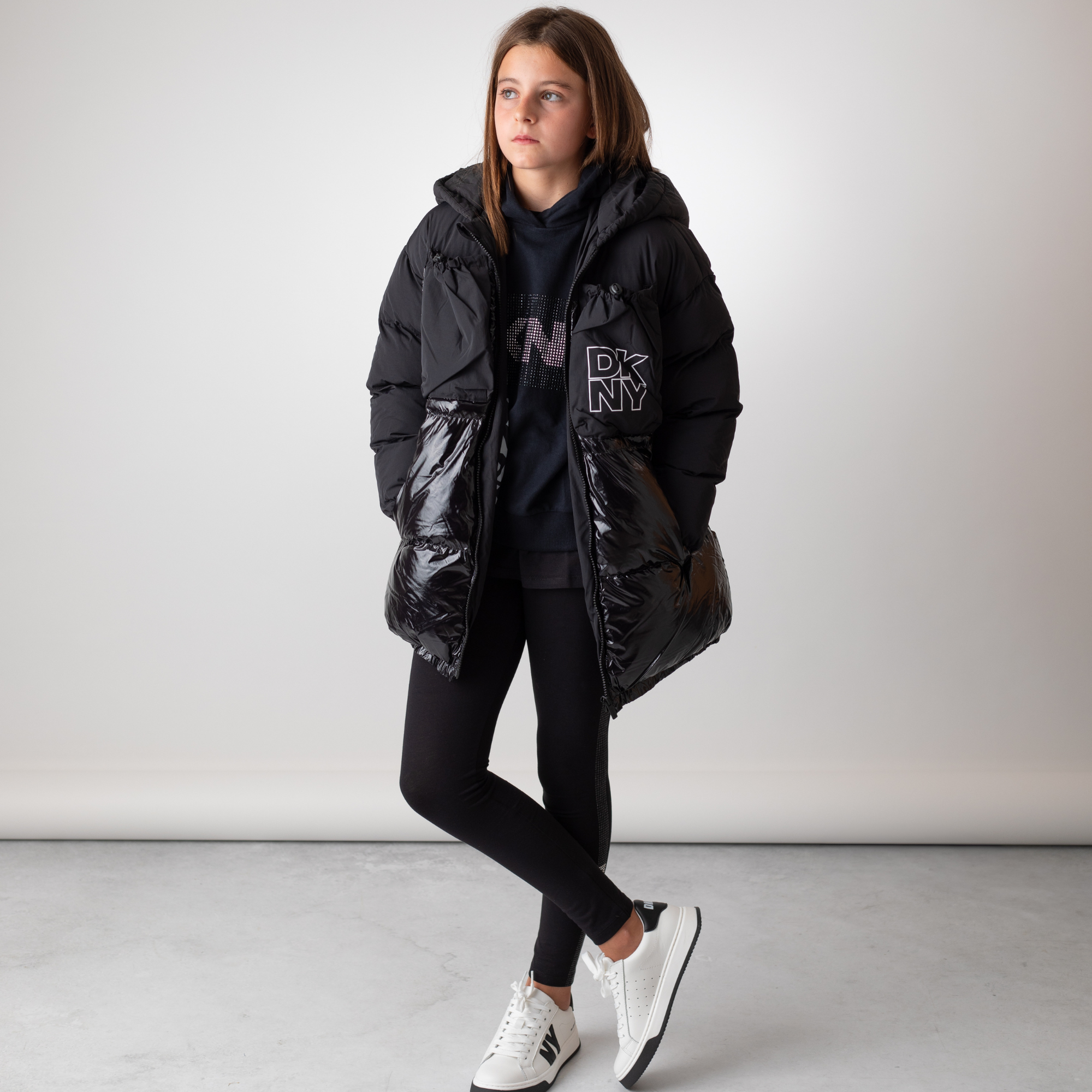 DKNY - D62378_09B – Parka impermeable de efecto satinado con capucha y bolsillos - Niña