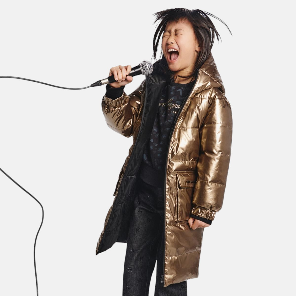 Karl - Z30603_M22 – Anorak largo reversible con capucha y bolsillos y cierre con cremallera - Niña