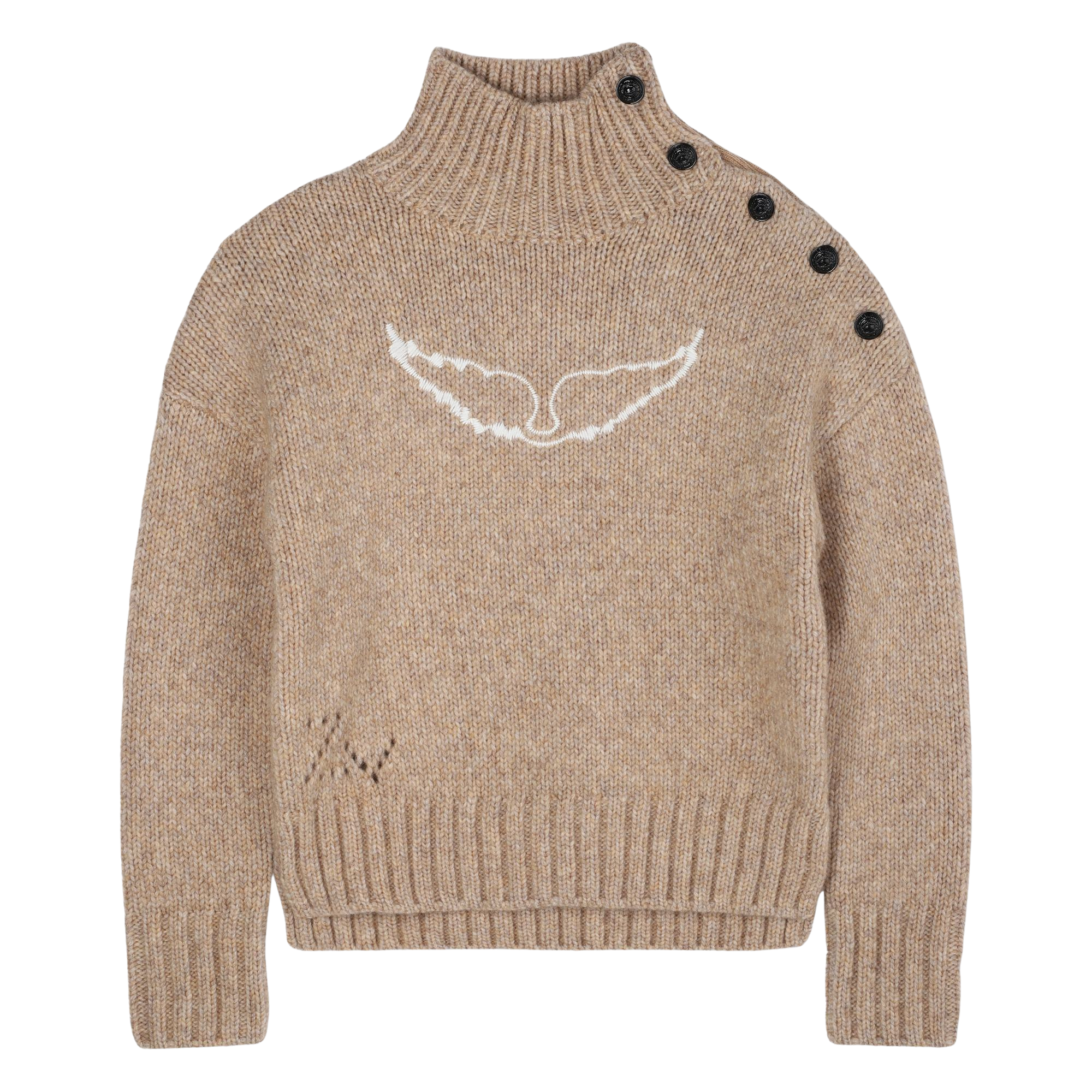 Zadig&Voltaire - X60425_H49 – Jersey con lana abotonado con cuello alto y bordados - Niña